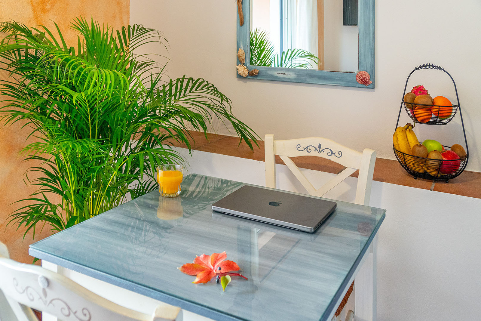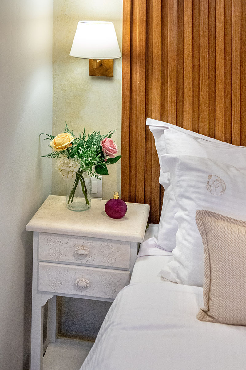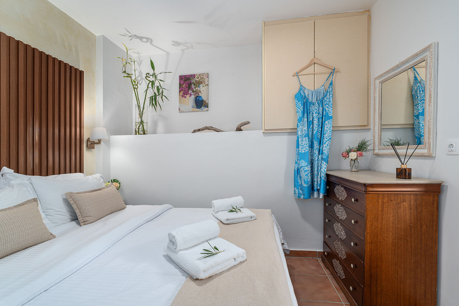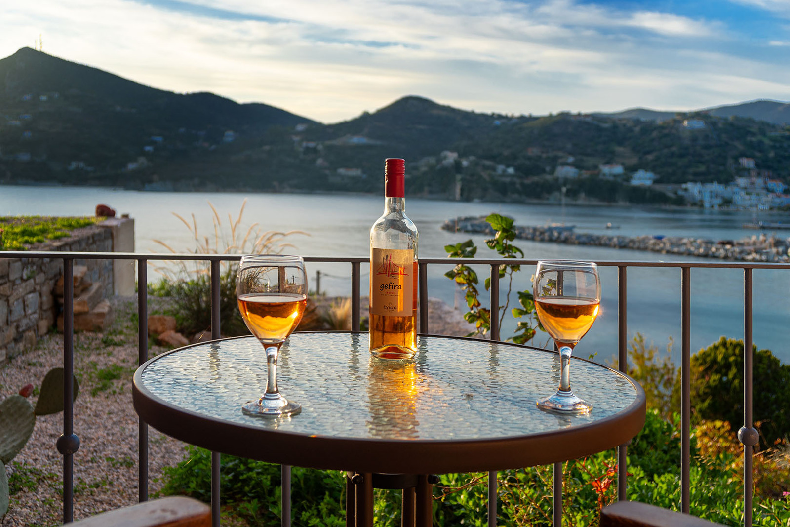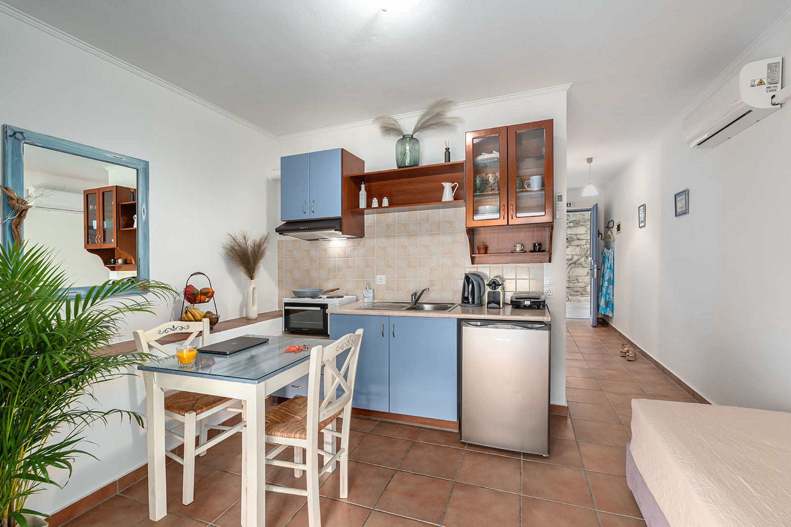 Each room is cozy and offers comfort and a signature authentic Greek hospitality. All of the rooms are individually furnished and feature furniture personally painted and other handcrafted as well. Each apartment has its own private balcony gazing at a magnificent view of the picturesque port of the village and the sparkling Aegean sea. Every evening you will have the chance to witness the breathtaking sunset that unfolds opposite of our property under the red sky.